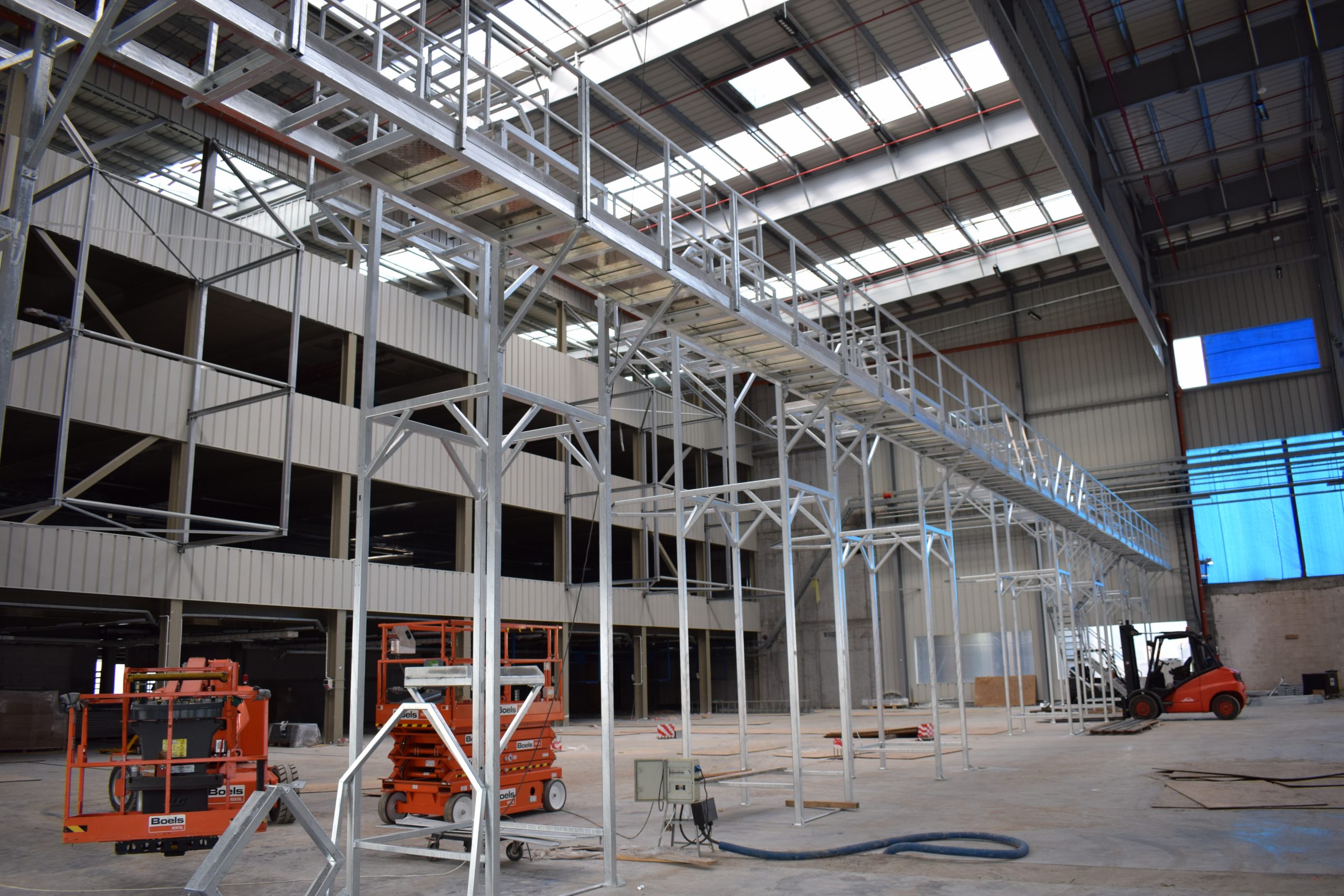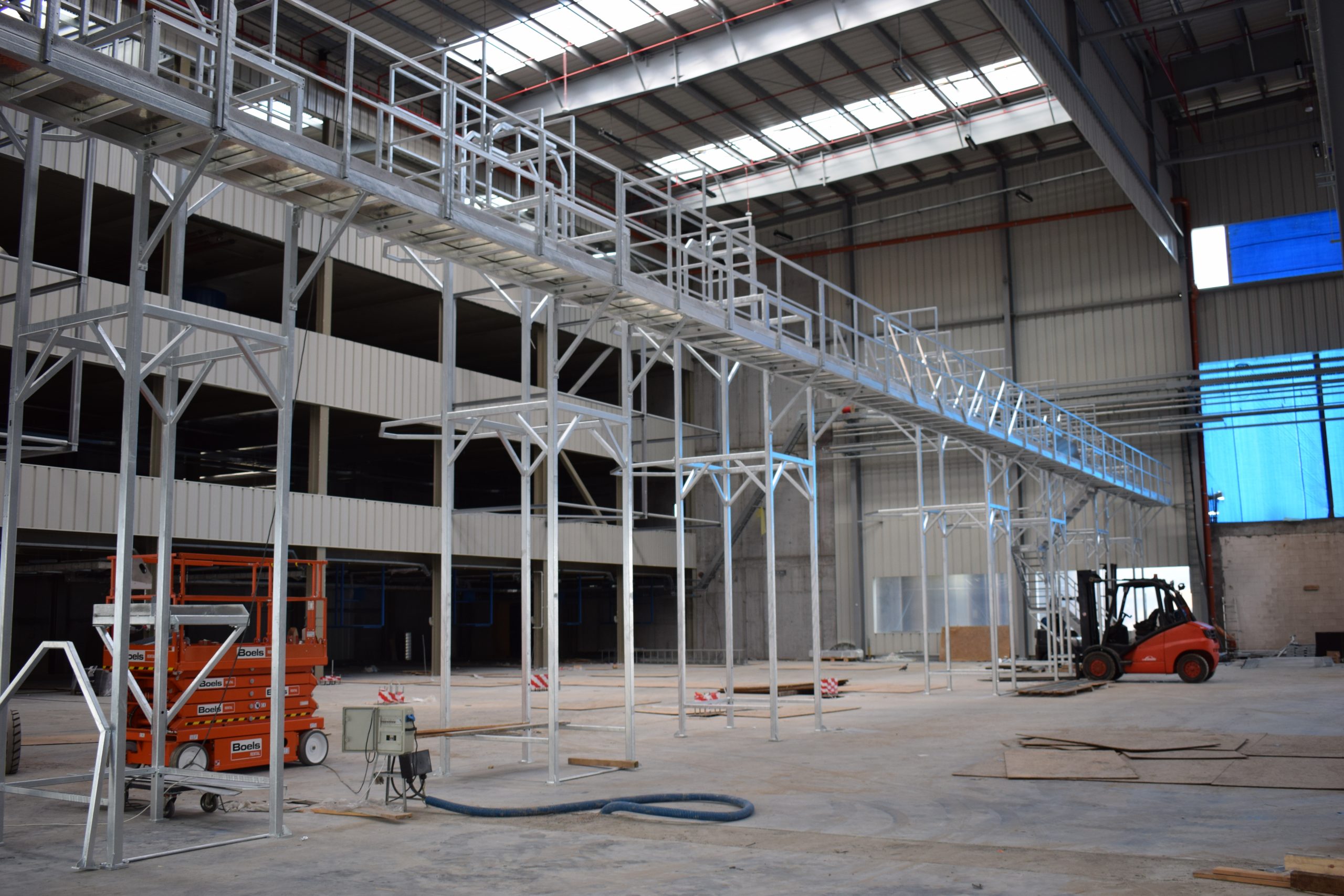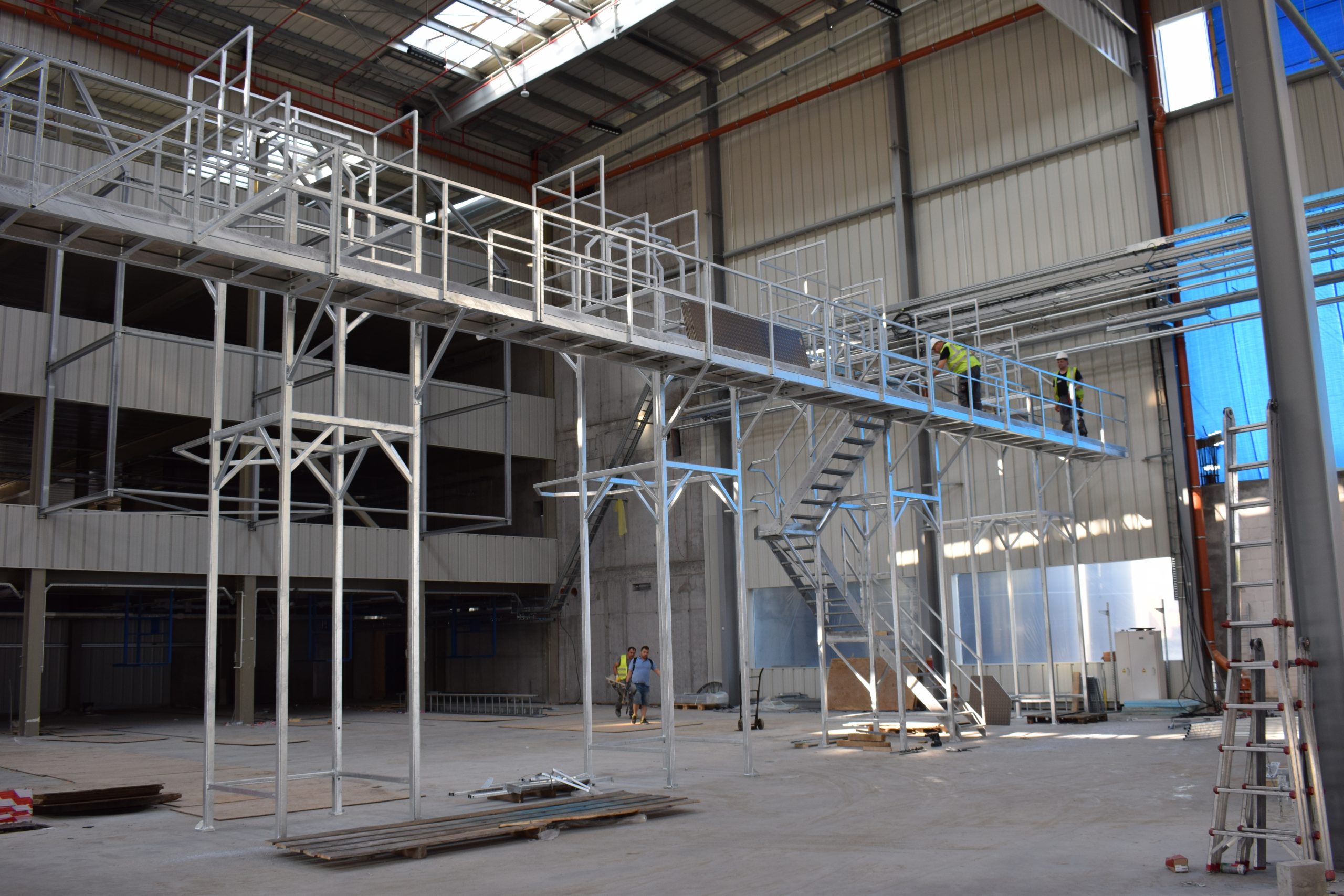 ¿Tiene dificultades con el acceso a sus plantas de producción? Con nuestros pasos, transiciones y pedestales podrá llegar hasta los lugares más inaccesibles. En caso de que no haya espacio para soportes, las estructuras también se podrán colgar desde el techo.