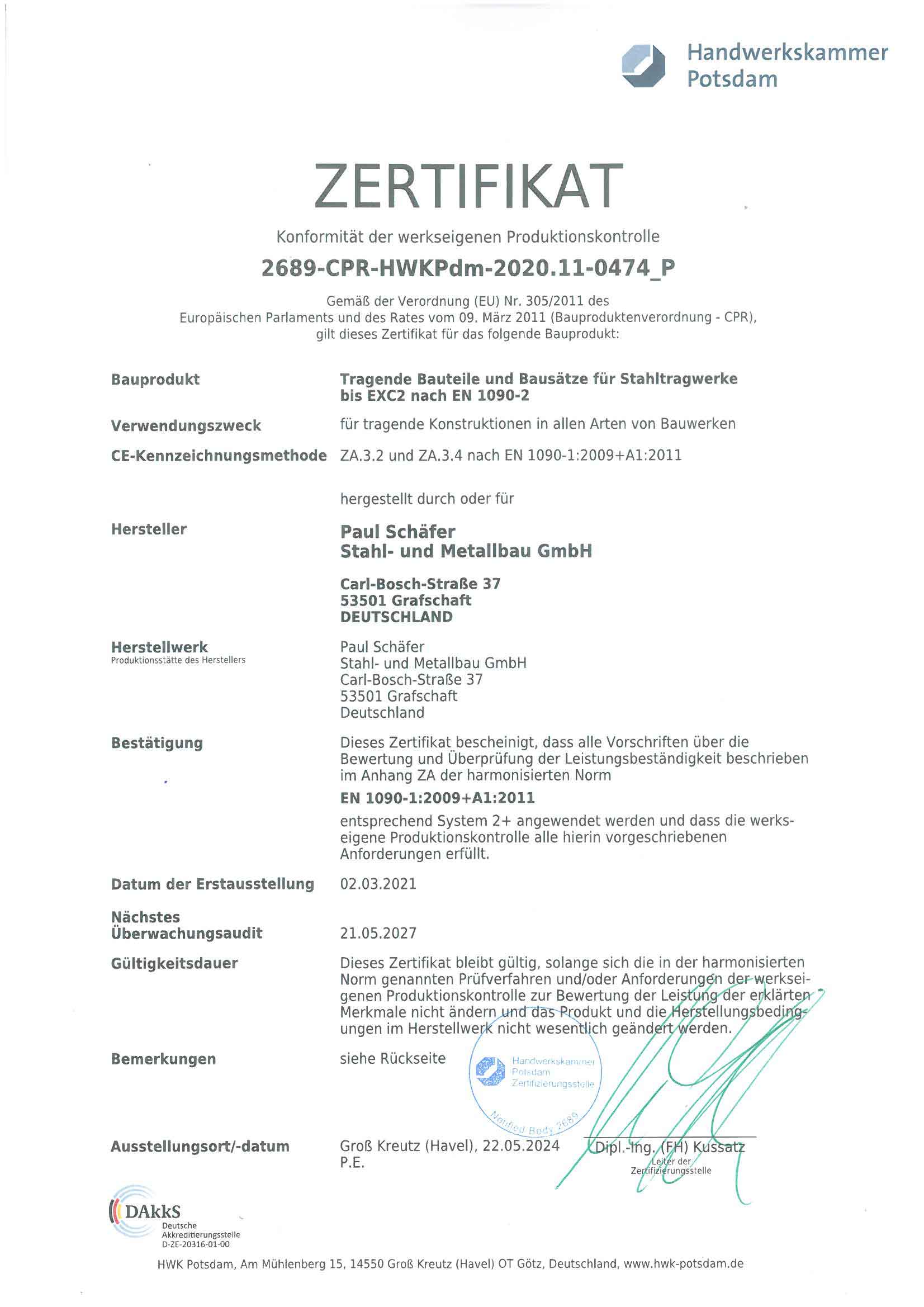 Wir sind zertifiziert nach DIN EN 1090-2 für tragende Bauteile für Stahltragwerke bis EXC2 in allen Arten von Bauwerken – ohne Einschränkungen. Damit garantieren wir Ihnen hohe Qualitäts- und Sicherheitsstandards.